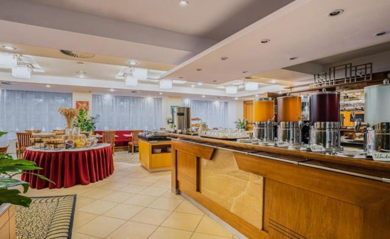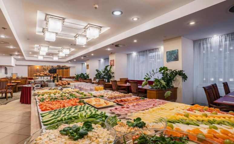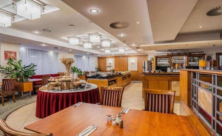 - Хотелът предлага ресторант Symphony, където се сервират чешка и международна кухня – закуска, обяд и вечеря;