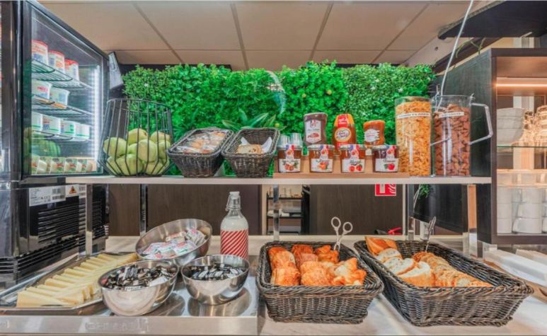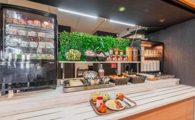 Всяка сутрин се предлага закуска на шведска маса. Хотелът разполага и с автомати за напитки и леки закуски.