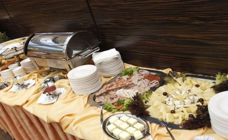 Закуската сервира се в часовете между 07:00 и 10:00 в ресторанта на хотела. През уикенда закуската е с удължено времетраене от 07:00 до 11:00ч. На закуска се предлага разнообразие от шунка, различни видове салам и наденици, сирене, сладки и солени печива, яйца, плодове и зеленчуци, зърнени закуски, млечни продукти, плодови сладка и топли и студени напитки. В случай че гостите ще отпътуват в по-ранен час, закуската им може да бъде пакетирана за из път.