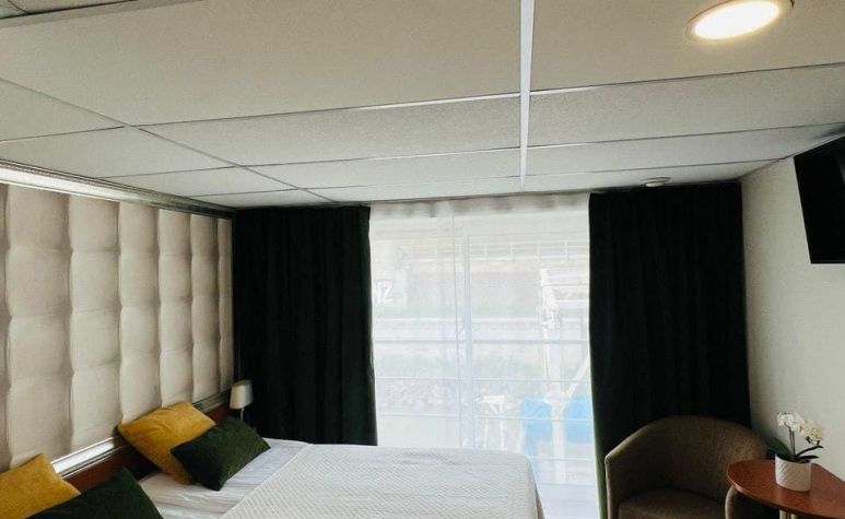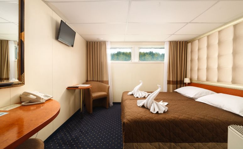 . Каютите са разположени на 3 палуби, като на основна палуба разполагат с илюминатори, които не се отварят, на средна с прозорци и на горна с големи френски прозорци, които се отварят. Всички каюти имат индивидуален климатик, сателитна ТВ, сешоар, баня и тоалетна.