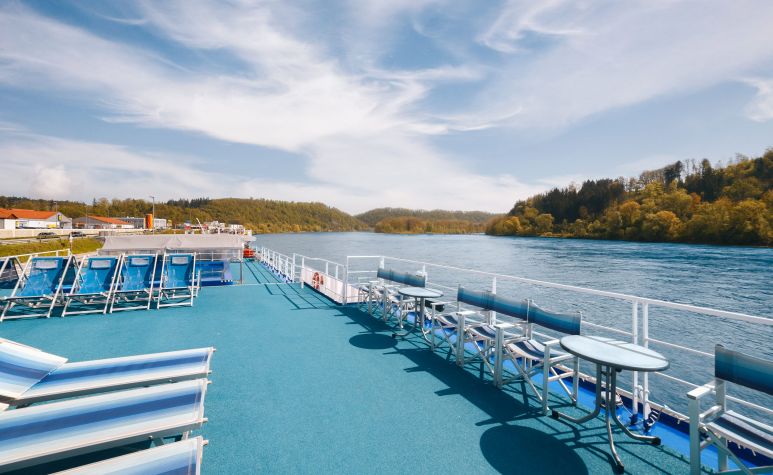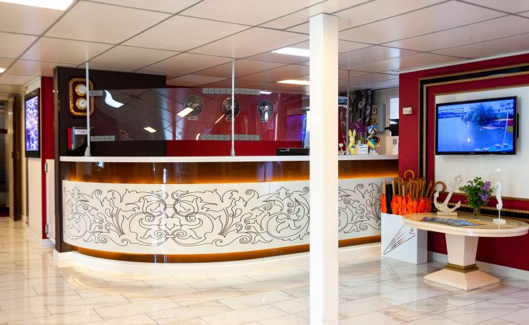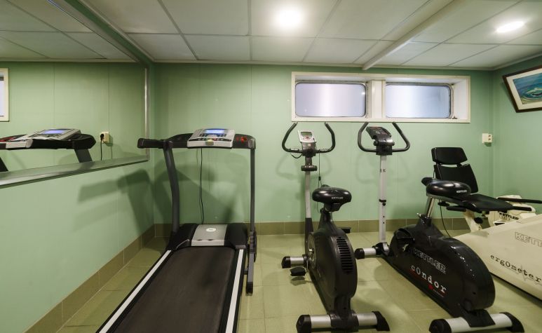 На борда ще откриете, ресторант, панорамен бар, слънчева палуба с шезлонги и басейн, малък фитнес и сауна.