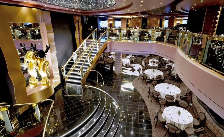 Корабът разполага с няколко заведения за хранене – основен ресторант, разположен на 2 дека, два бюфета на самообслужване, ала карт ресторанти: американски стек хаус Butcher’s Cut, Суши бар, Вила роса – панорамен ресторант.