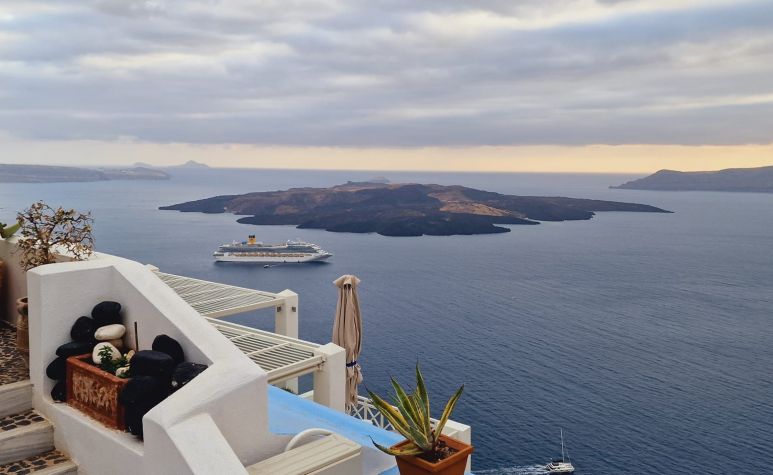 Най-мечтаният гръцки остров е пред нас. Разполагаме с цял ден, за да направим най-красивите снимки в албума си. Разходете се сами или елате с нас на екскурзия до 2 от най-знаковите места на острова. Ще разгледаме Ия, типично гръцко селище с тесни улички, традиционни къщи и прочутите бели църкви със сини куполи, станали визитна картичка на острова. Селцето се намира високо на хълма и от него се открива зрелищна картина към залива на Санторини. Ще посетим и столицата Фира, разположена върху калдерата на вулкана. Градът е с много оживени и живописни улички, обградени от синьо-бели къщи, магазини и заведения. От тук тръгва и въжения лифт, с който ще се спуснем до пристанището на Фира, за да се приберем на кораба /слизането на острова е с лодки от кораба.