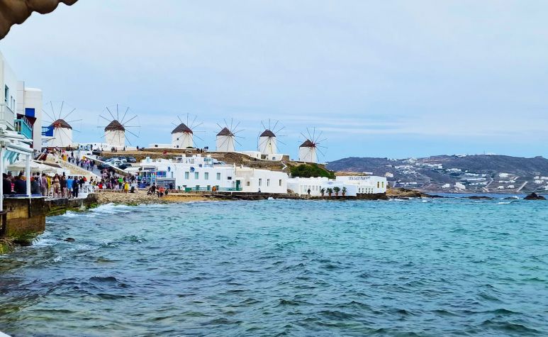 Миконос е най-популярната ваканционна дестинация на Гърция сред елита, бохемата и любителите на нощния живот. Островът е известен и с белите си плажове, красиви заливи и разбира се – Мелниците. Може да се разходите из ветровитите улички на стария център и после да си намерите приятно заведение, за да посрещнете залеза.