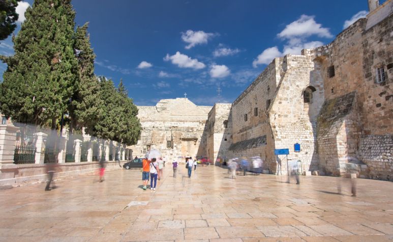 Закуска. Туристическа програма в Йерусалим – съгласно конституцията на държавата Израел, нейна единна и неделима столица. Панорамна гледка от Маслиновия хълм към столицата Йерусалим – разположен е в южната част на плато, част от Юдейските планини, и включва Елеонския хълм на изток и хълма Скопий на североизток от центъра на града. Пешеходна обиколка на Стария град: Гетсиманската градина – традиционно почитана като мястото, където Иисус Христос се моли в нощта на залавянето му. Днес за това събитие напомнят една базилика, посветена на страданията Христови и осем стари маслинови дървета, чиято възраст е над 2000 години; Виа Долороса (от лат. „Пътят на болката“) – това e улицата в древния Йерусалим, по която е минал с кръста Иисус Христос към мястото на разпятието (Голгота); храмовият комплекс Божи гроб – най-святото място за Християнския свят, където е разпнат, погребан и възкръснал Христос; Стената на плача – единствената структура, останала от Йерусалимския (Соломоновия) храм. Това название идва от това, че евреите често отивали там, за да тъжат за гибелта на храма; Хълмът Сион (Давидовият град) – гробът на цар Давид и стаята на Тайната вечеря. Посещение на рожденото място на Господ Иисус Христос – Витлеем, и построената в чест на това събитие базилика „Рождество Христово“ – най- голямата забележителност на града. Във Витлеем е роден и Давид – вторият цар на Израел, поради което в Библията градът е наричан често „градът на Давид“. Според библейско пророчество Месията трябвало да бъде потомък на Давид и да се роди в неговия град. Вечеря и нощувка във Витлеем.
