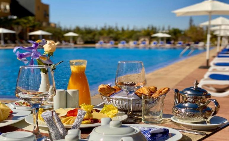 Хотелът предлага разнообразна кулинарна палитра, от изискани ястия до бързи закуски в снек-бара и коктейли в лоби бара, проучвайки както международни, така и марокански вкусове. Сервира се средиземноморска и мароканска кухня с вегетариански, веган, халал и безглутенови опции. Закуската включва континентални, бюфетни и вегетариански избори.