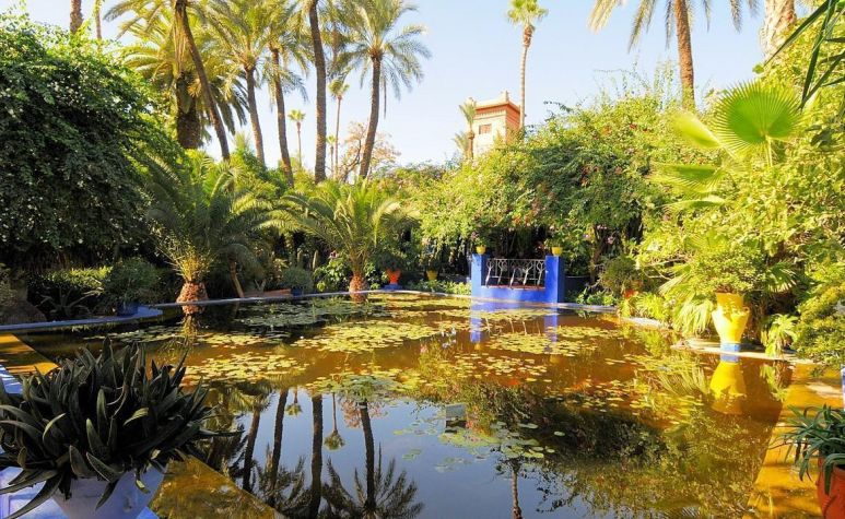 Посещение на градините Мажорел и Анима Гардън (ЗАЯВЯВА СЕ И СЕ ЗАПЛАЩА ПРЕДВАРИТЕЛНО ОТ БЪЛГАРИЯ. При желание да се заяви на място, наличността на билети е на препотвърждение). Историята на градината започва през далечната 1920 година, когато колониалната епоха е в разгара си. Именно тогава Мароко е окупиран от Франция. През същата тази година в Маракеш се заселва виден френски художник – Жак Мажорел. Тази градина, наричана прозаично ботаническа, е всъщност магическа и съчетава вижданията на френския художник Жак Мажорел за цветове и светлосенки, любовта му към ислямското изкуство и растенията. Целта му била да създаде, както самият той казвал, “импресионистична градина”, “катедрала от форми и цветове”. Тя е като парче пъзел от някаква друга реалност, сложен погрешно сред розовия колорит на Маракеш.