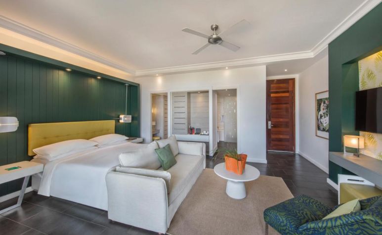 Стилните и просторни стаи с модерен интериор разполагат с балкон и изглед към морето. Имат телевизор с плосък екран, зарядно устройство за iPod, бюро и собствена баня с душ, вана и безплатни тоалетни принадлежности. Някои от стаите са разположени до самия плаж.