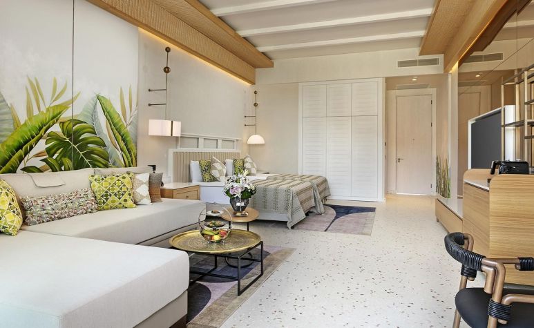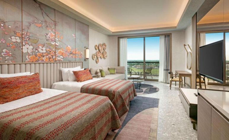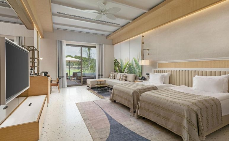 Хотелът разполага с 600 стаи, от които една част са разположени в основната сграда с гледка море, голф игрище или градина, която се състои от 8 етажа и 8 асансьора, отделно предлага стаи Lagoon и Вили. Всяка стая разполага с комфортни легла и матраци, климатик, сателитна телевизия с 49" HD LCD TV., телефон, баня с душ, премиум козметика Etro/ Bvlgari, козметично огледало, халат и чехли за СПА, сешоар, мини бар, сет за кафе и чай, сейф, балкон, wifi, меню с избор на възглавници, дигигателн ключ за осветление.
