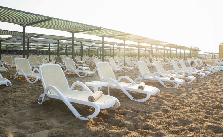 Плаж: пясъчен. Чадъри, щезлонги, матраци - безплатно. Хавлии за плажа - безплатно срещу карта за хавлии, която се дава при настаняването.