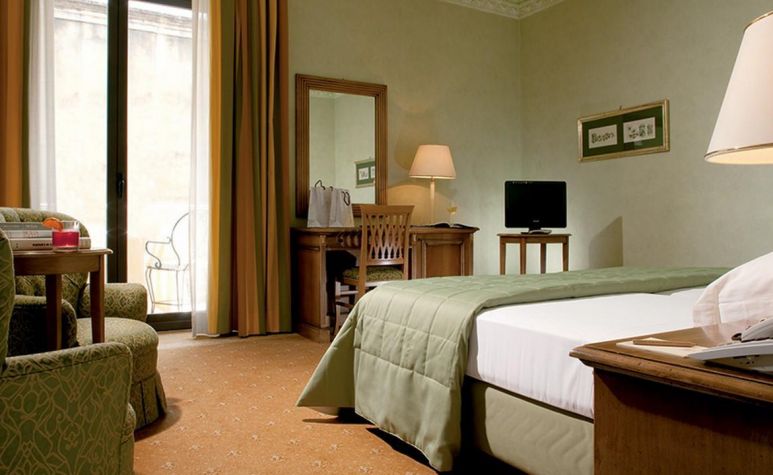 Хотелът предлага 130 стаи в класически стил с безплатен Wi-Fi, сателитна телевизия и безплатни безалкохолни напитки от минибара. Предлага се платен паркинг. Повечето стаи са с изглед към главния двор, а някои имат балкон с изглед към улицата.