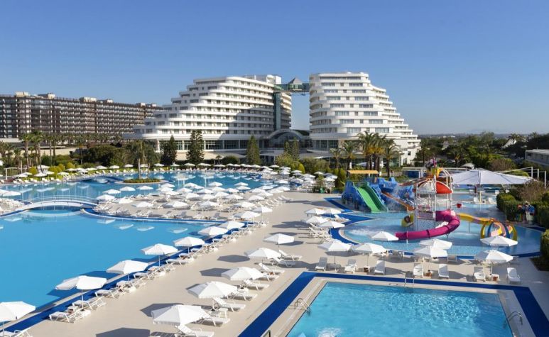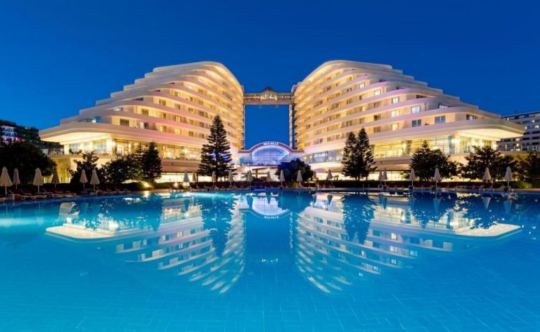 Разположен в Лара, Анталия, хотел Miracle Resort 5* предлага специални удобства за тези, които биха искали да имат една необикновена ваканция в допир с всички нюанси и възможности, които дава природата и в комбинация с комфорта, отличния вкус и забавленията на хотела.