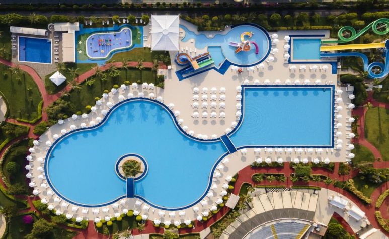 Гостите на хотела ще могат да се насладят на своята почивка сред специално създадените басейни – за възрастни, деца и бебета. Външният басейн е с прясна вода, с дълбочина от 145 см. Басейнът за деца е с дълбочина от 45 см и обща площ от 350 кв.м.