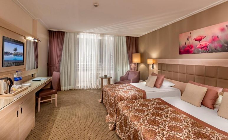 Хотелът се намира на брега на морето, на 7 минути пешеходно разстояние от плажа, летище Анталия се намира на 19 км от хотела.