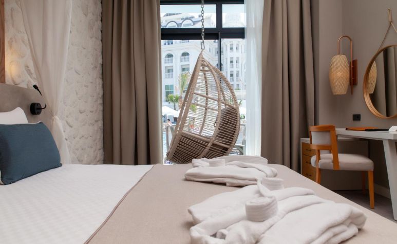Хотелът разполага с общо 232 стаи, разположени в 6-етажна основна сграда, от които 118 Standard (28 м2), 55 Standard Pool view (с изглед басейн - 28 м2), 19 Swim Up (с директен достъп до общ басейн – 28 м2), 40 Family Room (2 спални, 1 баня - 37 м2).