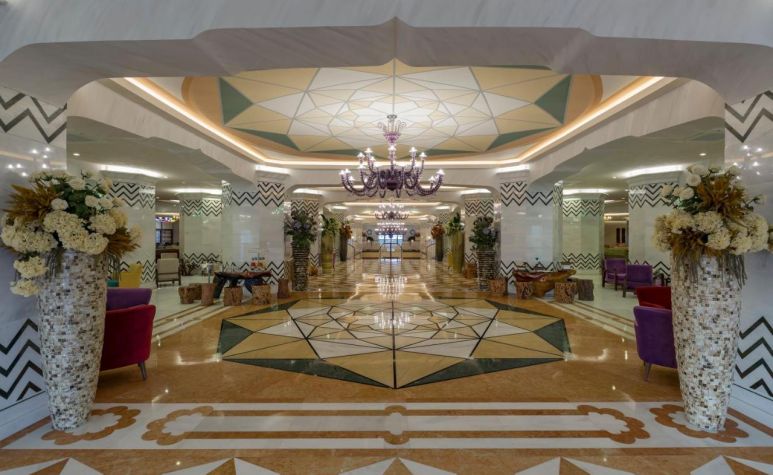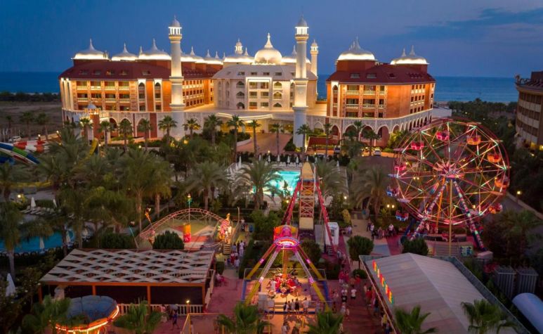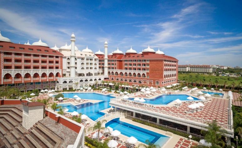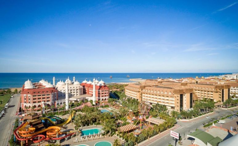 Основен ресторант, 3 а - ла - карт ресторанта (с предварителна резервация), 8 бара, 6 открити и 1 закрит басейн, 3 водни пързалки, магазини, SPA център, нощен клуб, конферентна зала. За децата: Детско меню, детски площадки, мини клуб (4-12 г.), 2 детски басейна, водни пързалки, мини дискотека, анимация, лунапарк, зоопарк. Безплатни услуги: Турска баня, сауна, фитнес, дартс, тенис на маса, плажен волейбол, аеробика, жива музика, анимация, интернет (в лоби). Платени услуги: Масаж, център за красота, фризьор, магазини, билярд, боулинг, интернет кафе, компютърни игри, химическо чистене, лекар, детегледачка, водни спортове, уроци по тенис, тенис на корт с осветление, скоростен интернет.