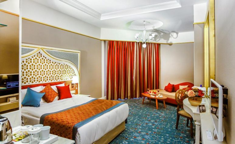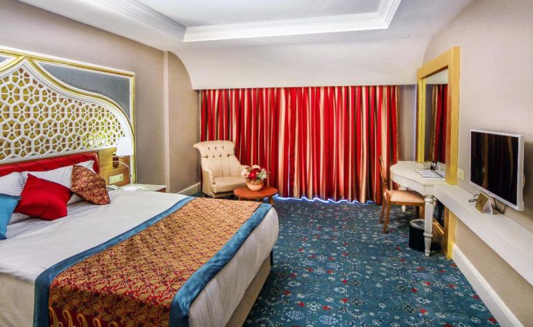 Хотелът разполага с общо 450 стаи, от които 356 стандартни стаи и 68 фамилни стаи. Всички стаи са оборудвани с: климатик, сателитна телевизия, телефон, баня с вана, сешоар, минибар - зарежда се един път в деня с вода и бира - безплатно, сейф (безплатно), балкон. Почистване на стаите и смяна на кърпите – всеки ден, смяна на бельото – 2 пъти в седмицата.