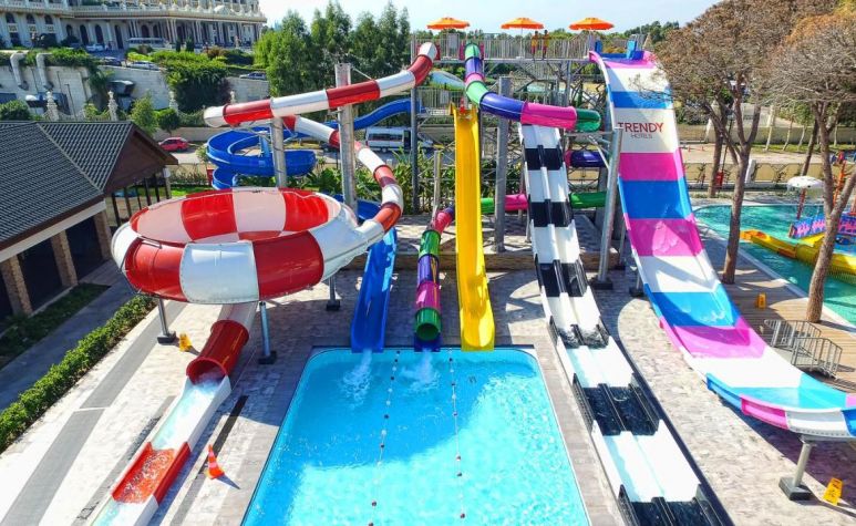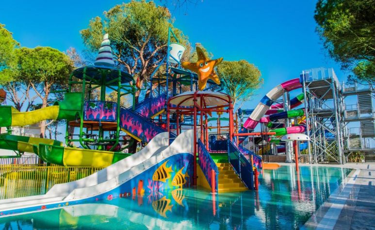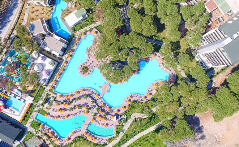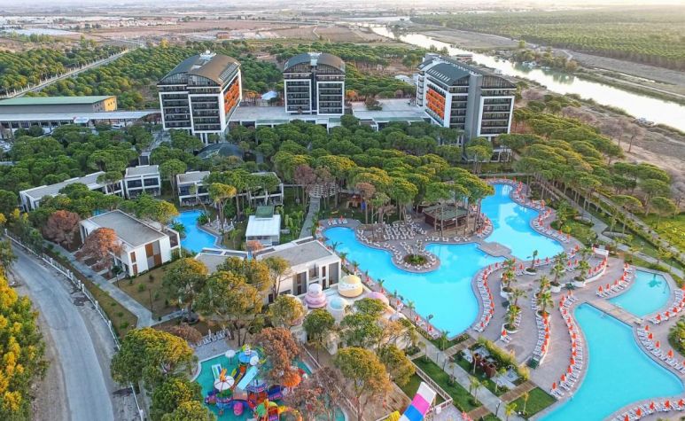 Основен ресторант, 5 a лa карт ресторанта (с предварителна резервация), 9 бара, 5 открити и 1 закрит басейн, 4 водни пързалки, аквапарк, мини клуб(4 - 12г.) магазини, Спа център, дискотека, TВ зала, 9 конферентни зали, билярд, боулинг, тенис корт, фитнес цетър, дартс, тенис на маса, плажен волейбол, паркинг.