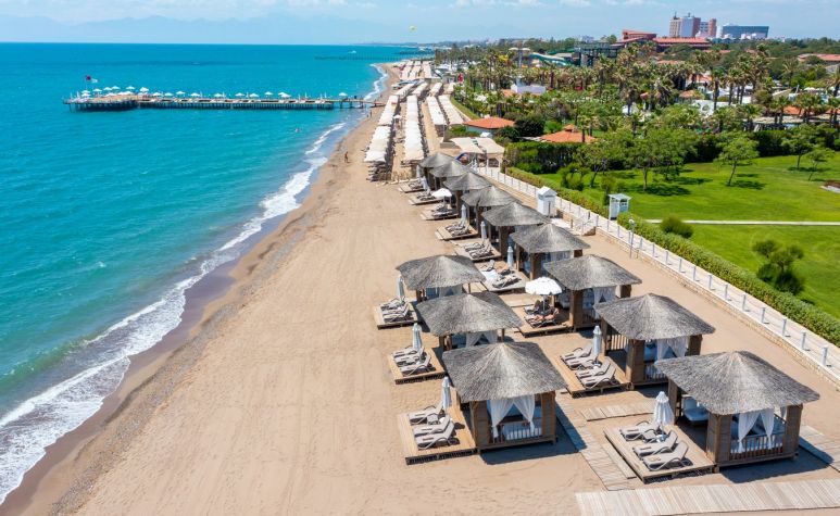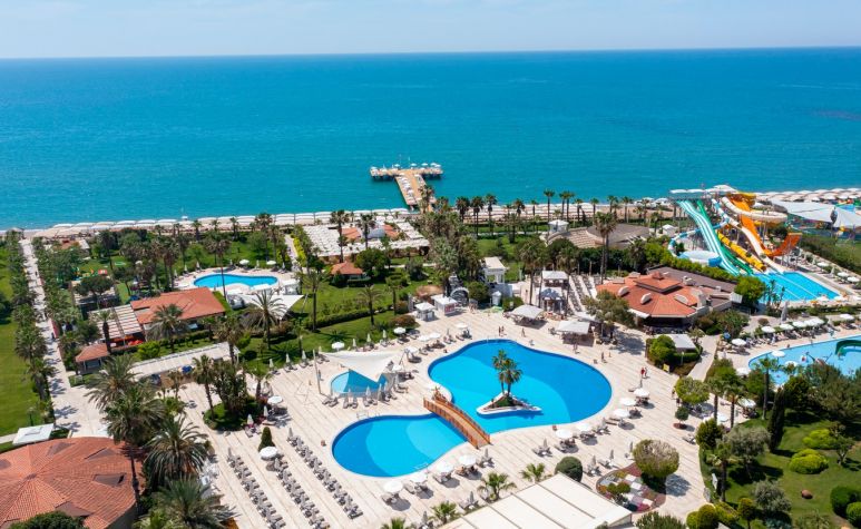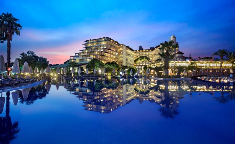 Основен ресторант, 5 а-ла-карт ресторанта (турски, средиземноморски, италиански, интернационален, азиатски, световен – срещу заплащане), 6 бара, 5 открити и 1 закрит басейн, дискотека, сладкарница, СПА център, аквапарк, 8 конферентни зали, Wi–Fi (в лоби).