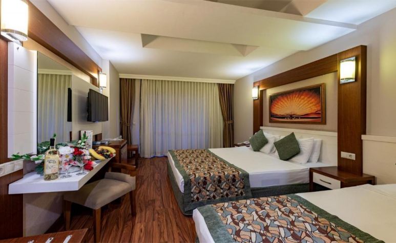 Кемер, където планината Тавър се среща с тюркоазения цвят на Средиземно море, е в центъра; С цел предоставяне на всички видове услуги, от които се нуждаете на почивка с истинско качество; Нашият "ALL INCLUSIVE" хотел ви очаква, нашите скъпи гости, с великолепната си гледка към планината, украсена със зеленина, заедно с уникалното си слънце и плаж.