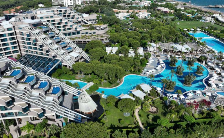 Основен ресторант, 6 а-ла-карт ресторанта (турски, италиански - 1 безплатно посещение, с предварителна резервация; стек, източна кухня, мексикански, рибен – срещу заплащане), 2 снек бара, сладкарница, кафетерия, 9 бара, витамин бар, диско бар, 5 открити и 2 закрити (отопляеми) басейна, аквапарк, амфитеатър, СПА център, 4 футболни игрища, магазини, 17 конферентни зали, паркинг.