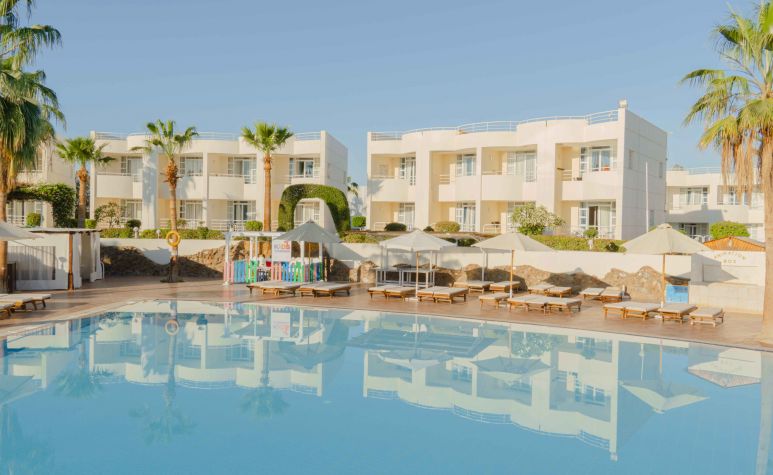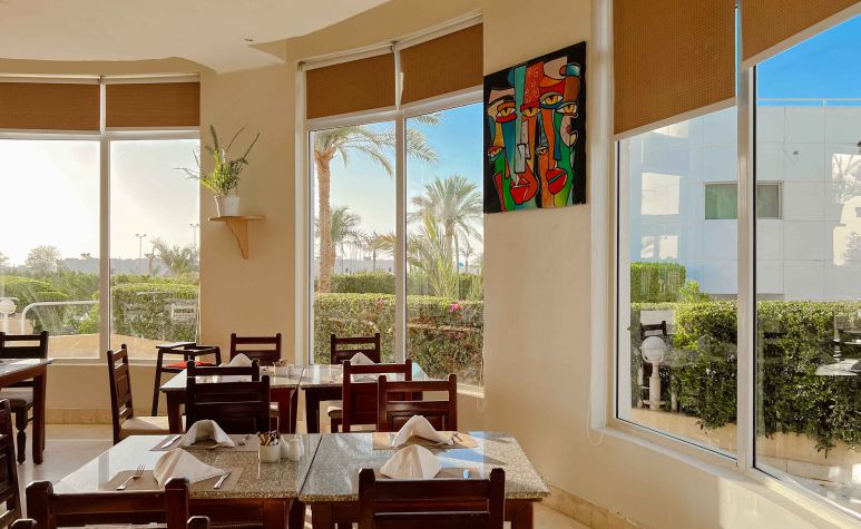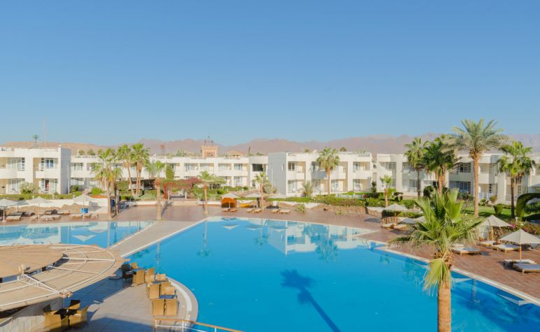 Намира се на 18 км от летище Шарм ел Шейх, на 8 км от централната част на курорта Наама Бей и на 4 км от Стария град, на 500-600 м от брега на морето (2-ра линия).