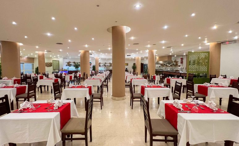Основен ресторант La Luna, пицария, лоби бар, бар басейн (срещу заплащане), бар на плажа (срещу заплащане), 2 открити басейна, магазини, паркинг, лека анимация, денонощна рецепция, СПА център, салон за красота.