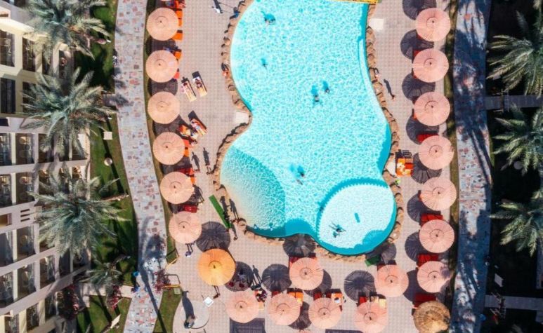 Пет открити плувни басейна и един отопляем басейн през зимата, обхващащ 551 кв.м., джакузи с прясна вода, 451 кв.м. и 429 кв.м., отделен детски басейн 176 кв.м.