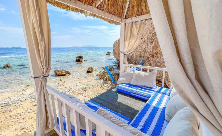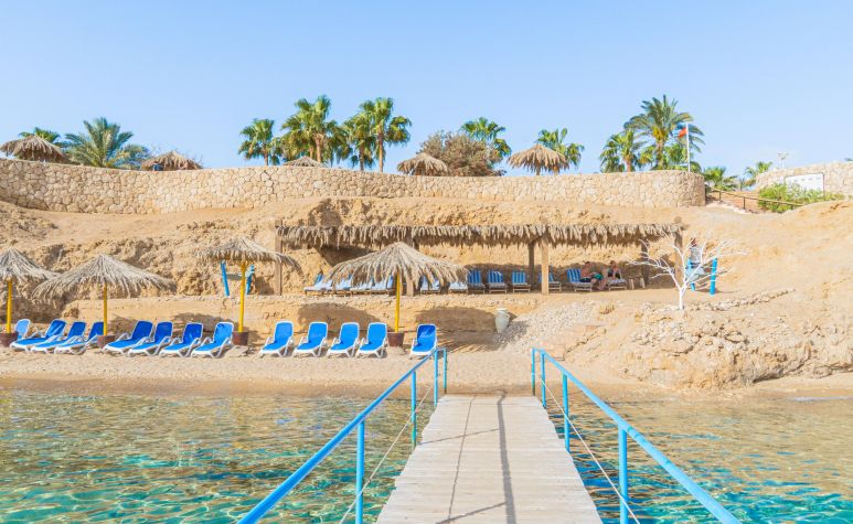 Собствен, пясъчен и коралов, с дължина 700 метра, кей. Чадъри, шезлонги и плажни кърпи на плажа и при басейна – безплатно.