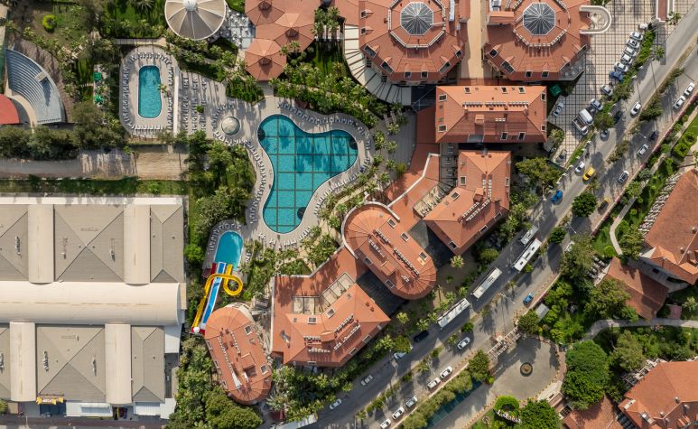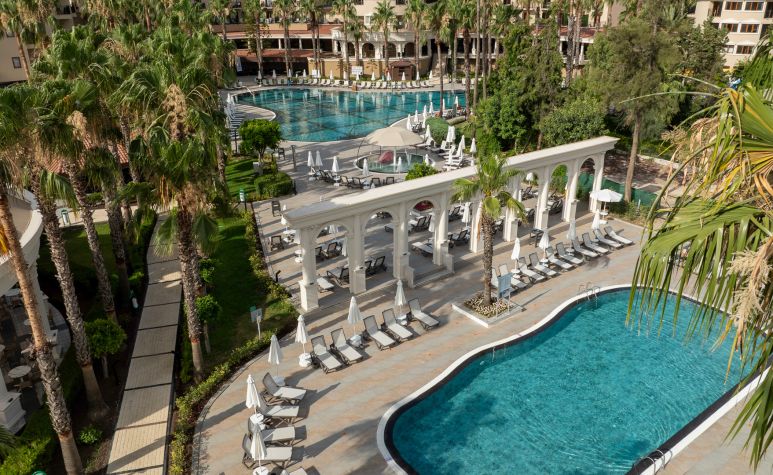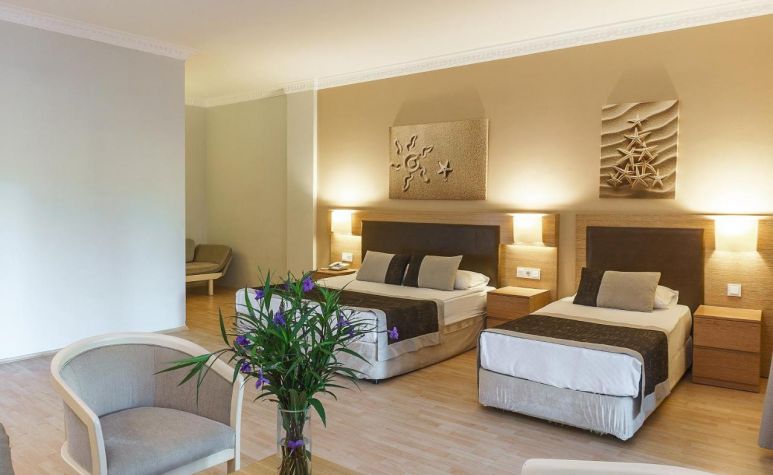 Намира се на 58 км от летище Анталия, на 65 км от центъра на Анталия, на 11 км от центъра на Сиде, на 500 м от брега на морето. Построен 1998 г., на обща площ от 26 000 м2. Частично реновиран 2023/2024 г.