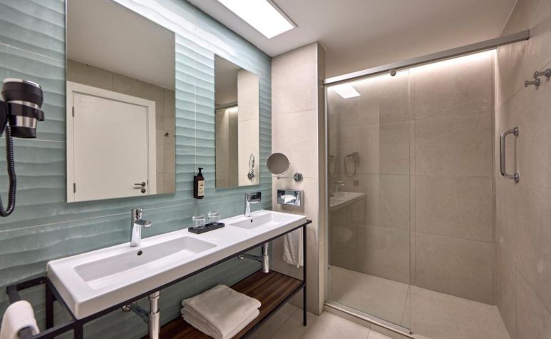 Хотелът разполага с общо 380 стаи - стандартни (гледка градина/страничен изглед море/море - 29 кв.м.) и фамилни (45 кв.м.). Всички помещенния са оборудвани с телевизор, телефон, климатик, минибар, сейф, сешоар, сет за кафе/чай, баня с душ, балкон или тераса.