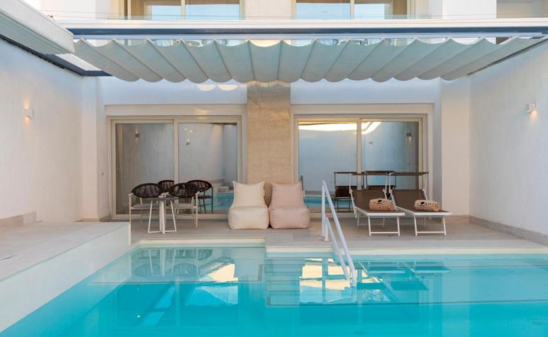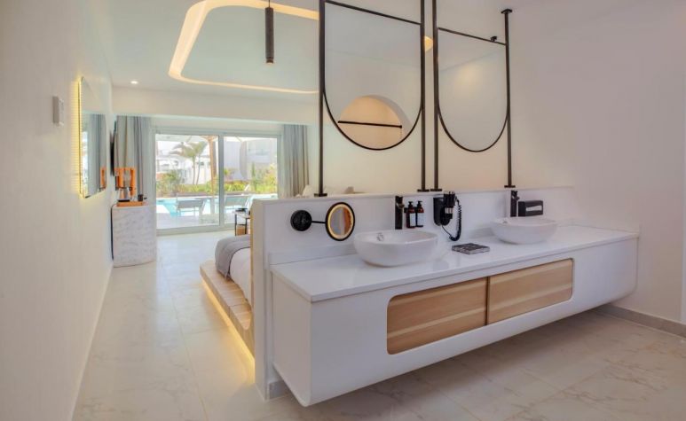 Хотелът разполага с общо 46 стаи, от които 26 Junior Suite Swim-Up Room (тераса с достъп до споделен басейн Swim-Up, 47 кв.м), 16 Junior Jacuzzi Suite (с външно джакузи, 60 кв.м), 4 Executive Pool Suite (с частен басейн, 70 кв.м).