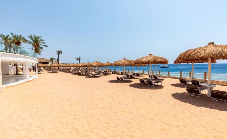 Собствен, пясъчен, с дължина от 160 м.; кей. Чадъри и шезлонги на плажа и при басейна - безплатно. Плажни кърпи - безплатно.