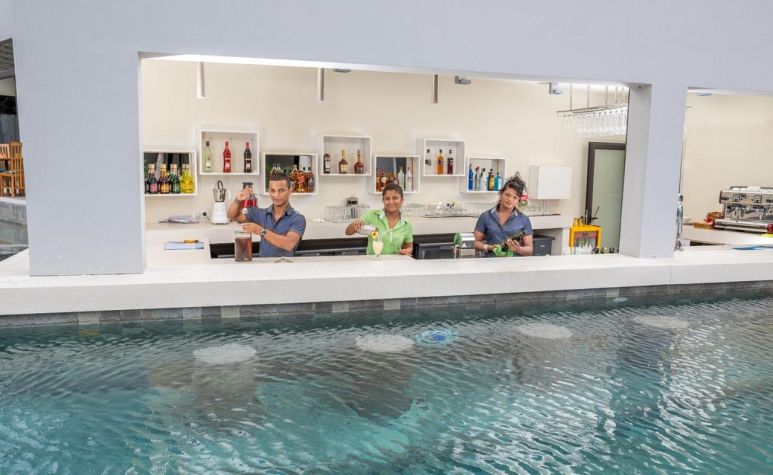 Ресторантите в хотела предлагат микс от европейски и маврицийски вкусове, но и познати на гостите ястия, с което са перфектният избор за закуска, обяд и вечеря. На територията на хотела е разположен и бар до басейна, който предлага освежаващи напитки и вкусни снаксове целодневно. Център за водни спортове (срещу заплащане).