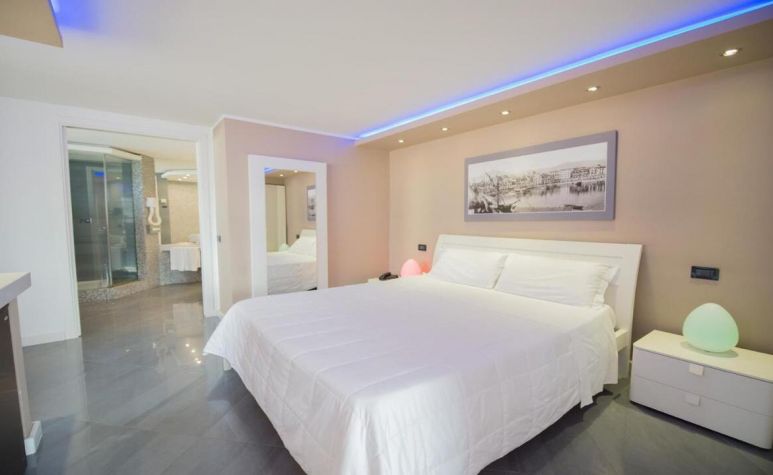 Junior Suite - обзаведени с модерен дизайн и разположени на 10 етаж на хотела, те предлагат удобно двойно легло king size (широчина 180 см) в романтична атмосфера. Един от апартаментите разполага и с всекидневна зона, където можете да релаксирате, и голям балкон, който предлага спираща дъха гледка към покривите на града. Разполагат със амостоятелна баня с хидромасажна вана.