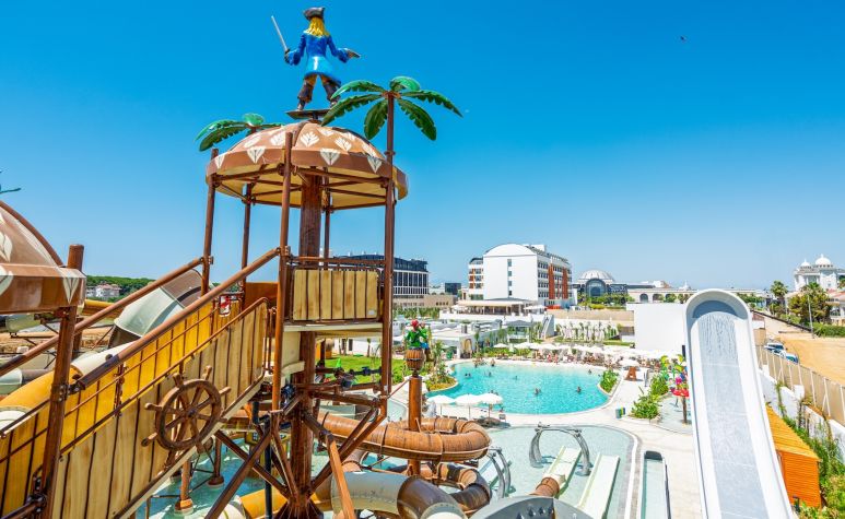 Основен ресторант (тематични вечери 7 дни в седмицата), 2 а-ла-карт ресторанта (турски, интернационален – безплатно посещение с предварителна резервация), ресторант на плажа, снек бар, сладкарница, 8 бара, 7 открити и 1 закрит басейн, аквапарк с 16 водни пързалки, СПА център, дискотека, магазини.