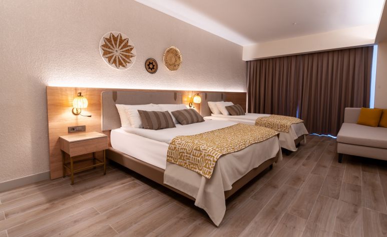 Хотелът разполага с общо 344 стаи, разположени в две 7-етажни сгради, от които 248 Deluxe Rooms (26 m²), 20 Deluxe Jacuzzi Rooms (разполагат с джакузи на балкона - 26 m²), 25 Deluxe Family Rooms (2 отделни спални със свързваща врата, 2 балкона - 47 m²), 22 Deluxe Suite Rooms (1 двойно, 1 единичо легло, 1 дневно легло - 43 m²), 20 Deluxe Swim-Up Rooms (с директен достъп до басейн от терасата - 29 m²), 3 Deluxe Disabled Rooms (пригодени за хора с ограничена подвижност - 26 m²).