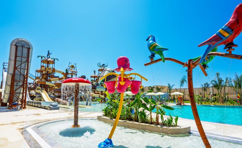 За децата: Детско меню, детски басейн, водни пързалки за деца, детска площадка, мини клуб (4-12г), гейм център, мини диско, детско кино, детска анимация, бебе пакет (кошара, бебешка вана, гърне, седалка за тоалетна, кана за гореща вода - с предварителна заявка), бебе бюфет (адаптирано мляко, пастьоризирано мялко, биберон, мокри кърпи, столче за хранене, нагревател за бутилки, стерилизатор - безплатно), детска количка (под наем).