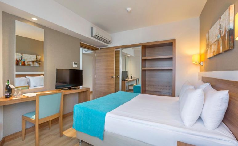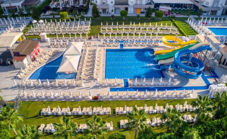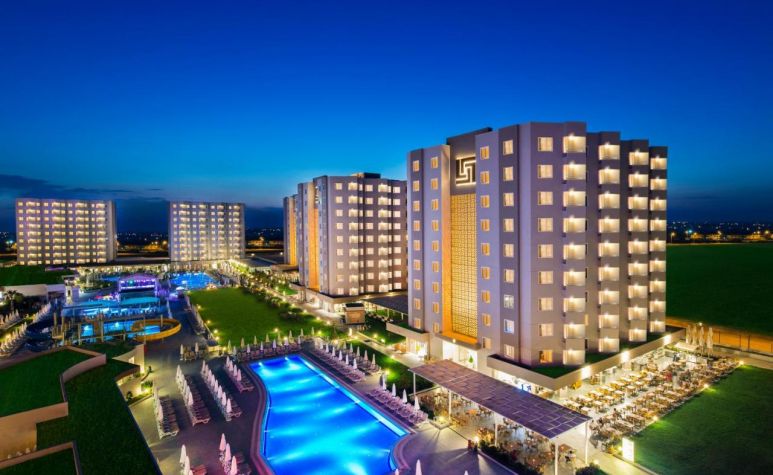Намира се на 14 км от летище Анталия, на 10 км от центъра на Анталия, на 8 км от центъра на Лара, на 200 м от брега на морето. Построен 2013 г., на обща площ от 35 000 м2. Реновиран 2016 г.