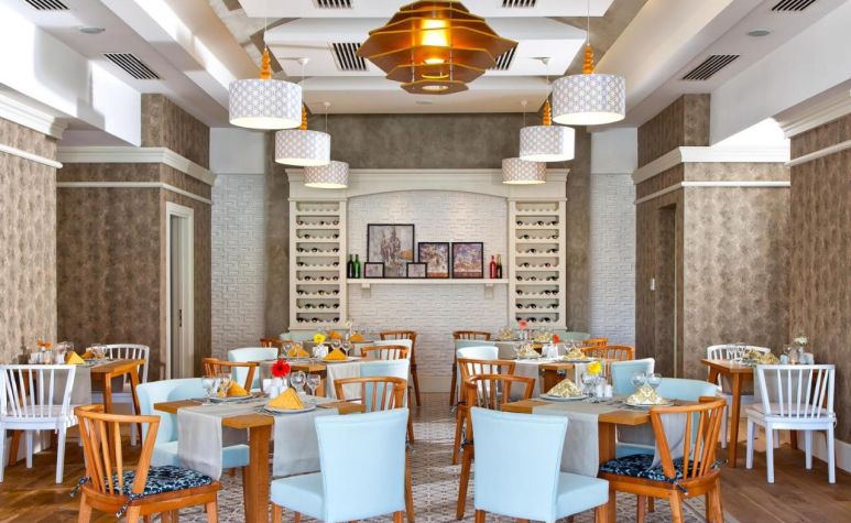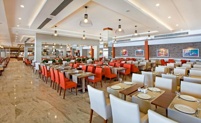Основен ресторант, 2 а-ла-карт ресторанта (интернационален, морски - срещу заплащане, с предварителна резервация), сладкарница, 6 бара (лоби бар 24/7, втори лоби бар, бистро бар, пъб, бар на басейна, плажен бар), 3 открити басейна, 4 водни пързалки, СПА център, паркинг.