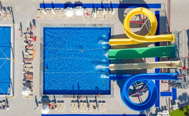 За децата: Детско меню, 1 открит детски басейн, детска площадка, мини клуб (4-12г), мини диско, детска анимация.