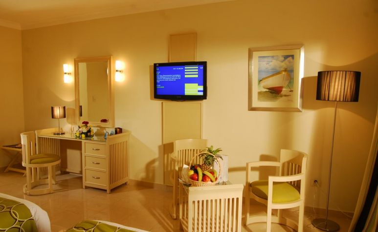 Хотелът разполага с 388 стаи, от които стандартни стаи (основна сграда – 32 кв.м.), стандартни стаи (бунгало - 28 кв.м.), стандартни стаи изглед море (– 32 кв.м.), клубни стаи (32 кв.м.), супериор стаи (32 кв.м.). Всички помещения са оборудвани с климатик, телевизор, телефон, баня с вана/ душ. сешоар, хладилник, сейф, хладилник, кана за кафе и чай, Wi Fi (платен), балкон.