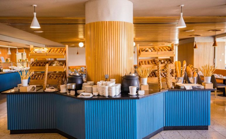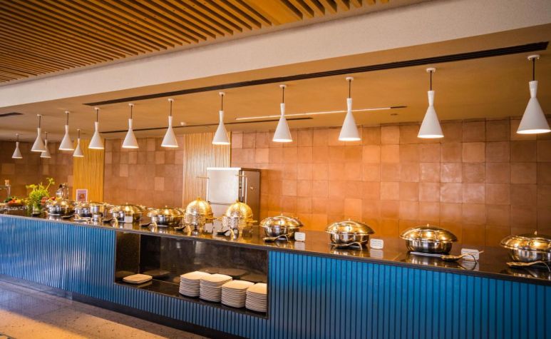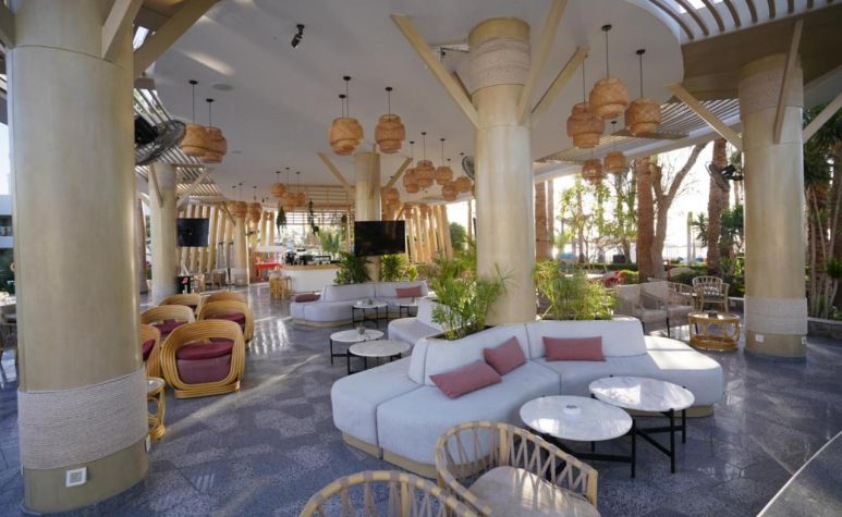 Основен ресторант, 3 а-ла-карт ресторанта (италиански, ориенталски и рибен), разположени директно на плажа (срещу заплащане), 3 бара, 2 открити басейна, магазин, банкомат.