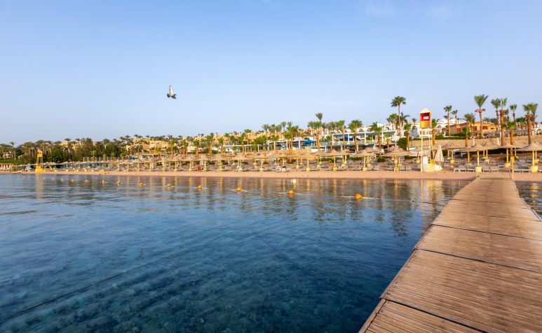 Собствен, пясъчен и коралов с дължина 300 м, риф и понтон. Чадъри и шезлонги на плажа и при басейна - безплатно. Плажни кърпи - безплатно.