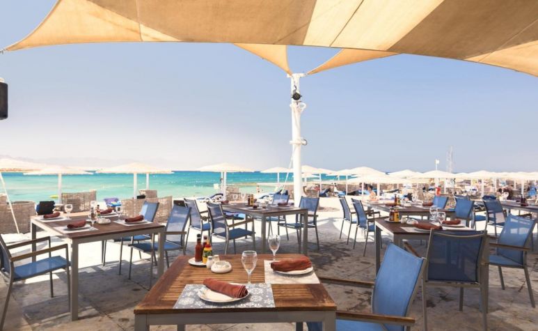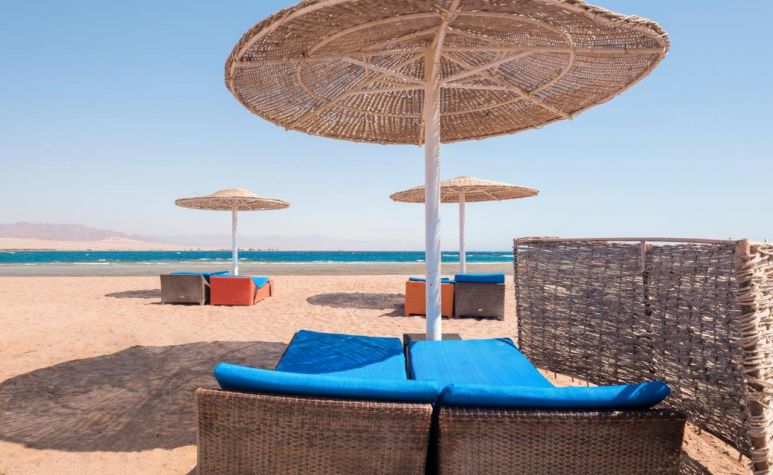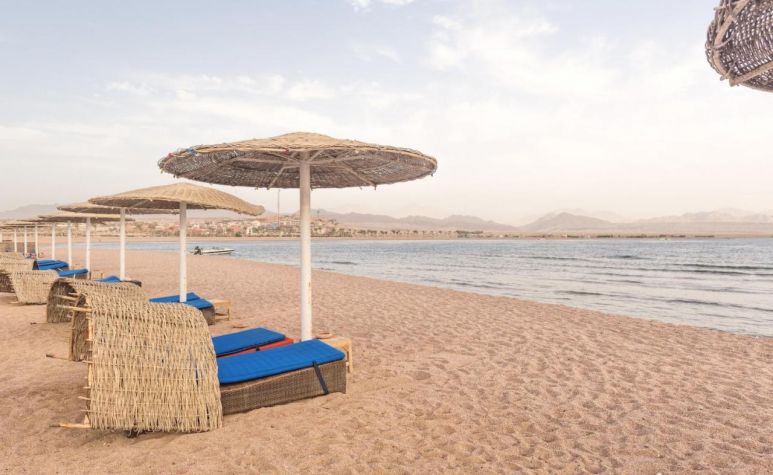Собствен, пясъчен с дължина от 800 м, коралов риф. Чадъри и шезлонги на плажа и при басейна - безплатно. Плажни кърпи - безплатно.