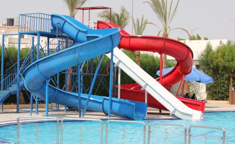 За децата: 2 детски басейна (неотопляеми), 5 водни пързалки.