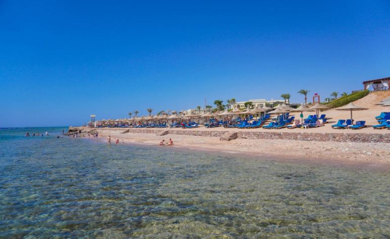 Собствен, пясъчен и коралов, с лагуна, кей. Чадъри и шезлонги на плажа и при басейна - безплатно. Плажни кърпи - безплатно.