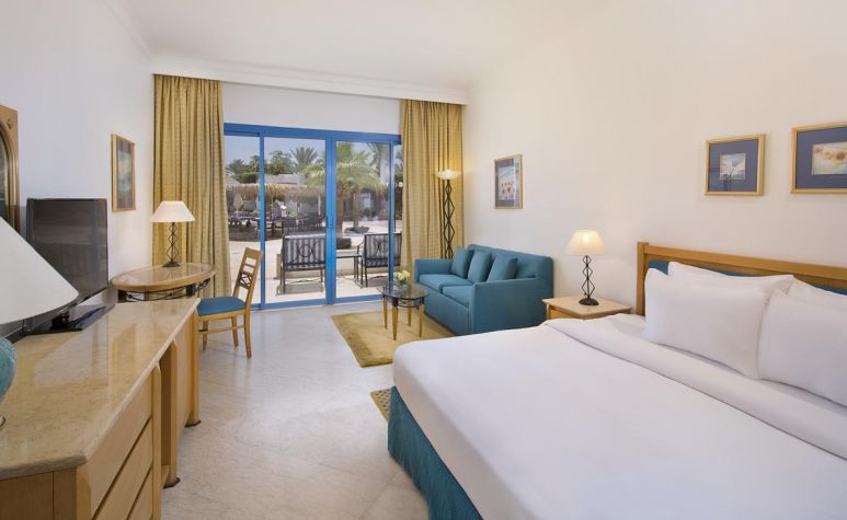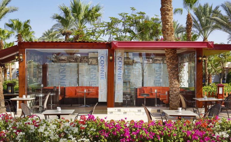Основен ресторант El Wadi, италиански а ла карт ресторант Al Fresco (едно безплатно посещение на престой, след предварителна резервация), наргиле бар (срещу заплащане), бар Oasis, бар на плажа, бар басейн Flambé, кафене Havana, бар Pirates, 4 открити басейна (един от които е отопляем през зимата), СПА център, достъп до Cleo Park (един от най-големите водни паркове в Шарм Ел Шейх с 21 пързалки), дневни и вечерни шоу програми.