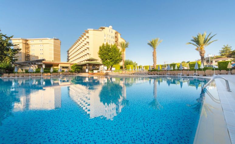 Намира се на 125 км от летище Анталия, на 133 км от центъра на Анталия, на 7 км от центъра на Алания, на 100 м от на брега на морето. Построен 1988 г., на обща площ от 22 000 м2. Реновиран 2016 г.