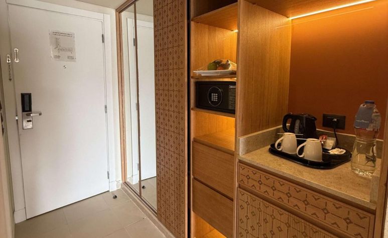 Всички стаи са оборудвани с климатик, телевизор, телефон, баня с вана/душ, сешоар, минибар (платено),сет за чай/кафе, сейф, балкон, Wi-Fi (безплатен). Почистване на стаите– всеки ден.